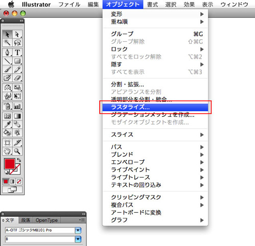ラスタライズとはオブジェクトを画像データ化する事で、透明・ドロップシャドウ等を使用された時の不具合を防ぎます。