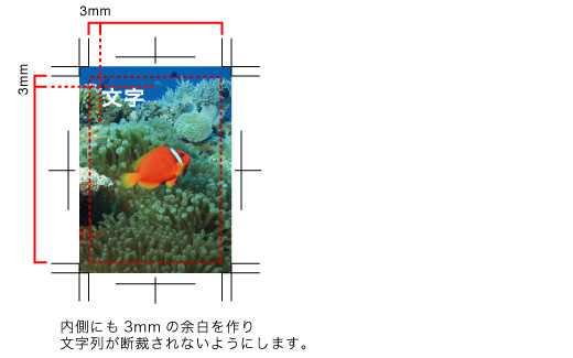 文字等の配置は内トンボより2mm~3mm程度内側に配置下さいますようお願いいたします。