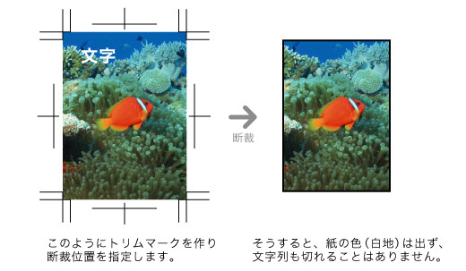 トリムマーク(トンボ)で断裁位置を判断いたしますので必ず確認してください。