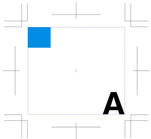 塗り足しの時と同様に、内側に余白を作ります。文字列、ロゴなど中途半端に切れてしまっては困るオブジェクトを断裁のラインよりも3mm以上内側に配置します。余白は断裁のラインが内側にずれた時に対応するものです。