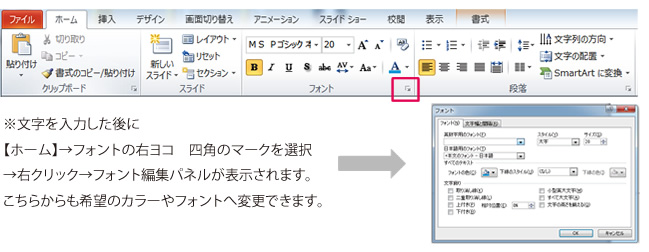 ①フォントのカラー・サイズ変更